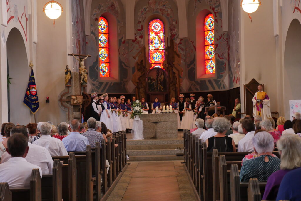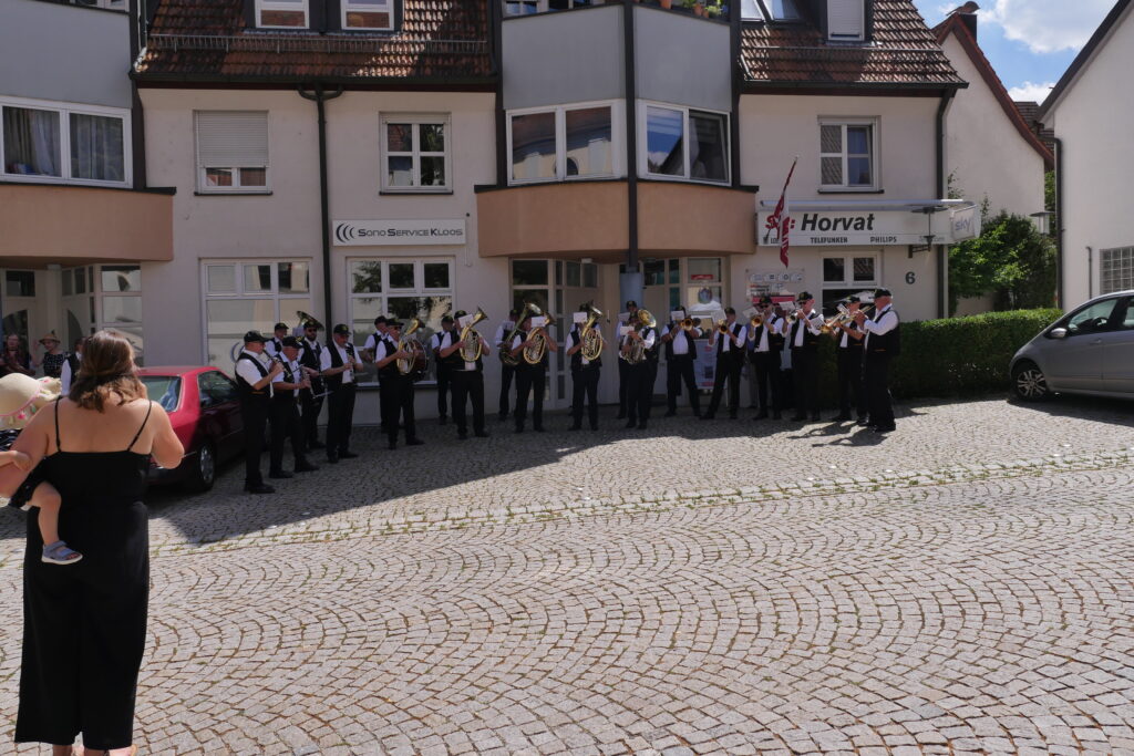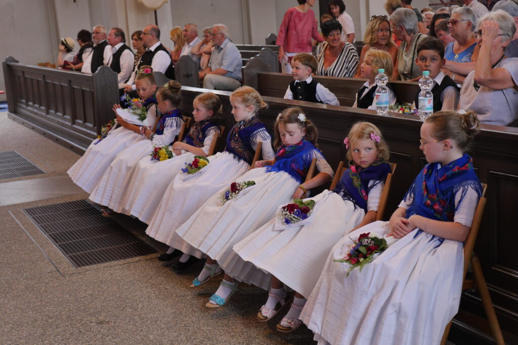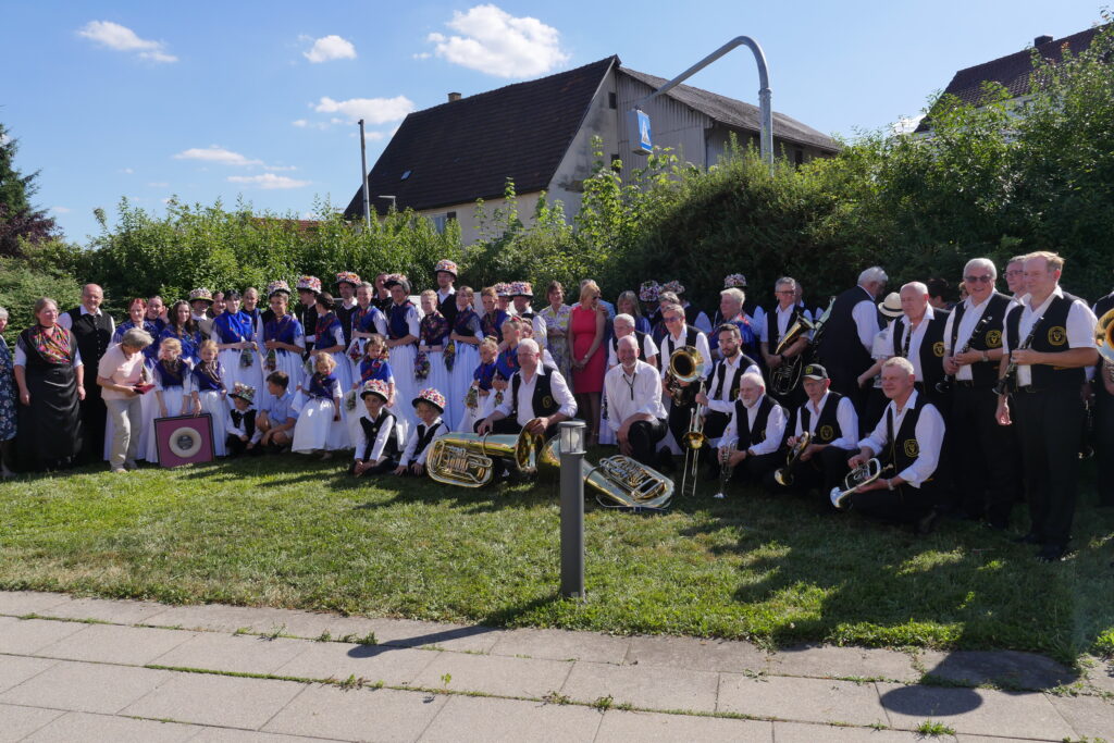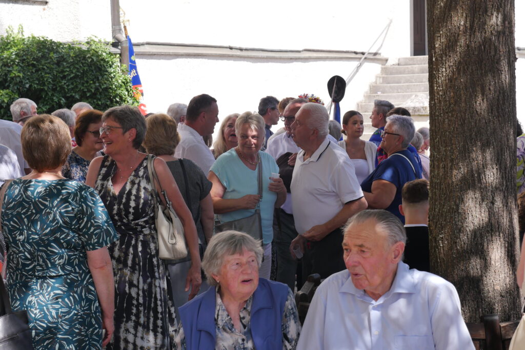 Nach einem festlichen Gottesdienst, der musikalisch von der Bläsergruppe unter der Leitung von Mathias Mittler umrahmt wurde, versammelten sich die Teilnehmer auf dem Kirchplatz. Das Vortänzerpaar lud Pfarrer Stadlbauer und die Kirchengemeinde ein, gemeinsam das Fest zu feiern. Zur Einstimmung spielte die Blaskapelle ein schwungvolles Ständchen.
