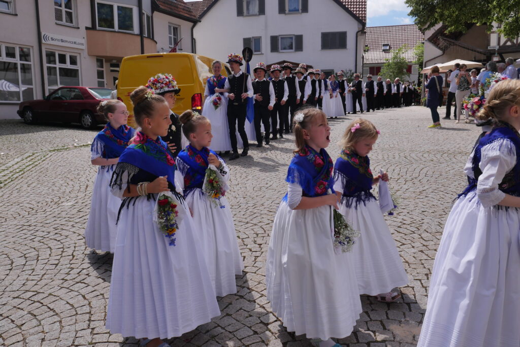 Man kann mit Fug und Recht sagen, dass das Kirchweihfest in Rechberghausen mittlerweile eine feste Tradition hat – schließlich wurde in diesem Jahr bereits die 39. Auflage dieses festlichen Ereignisses gefeiert. Bei strahlendem Kaiserwetter versammelten sich die Gäste, die teilweise aus großer Entfernung angereist waren, vor der katholischen Kirche, um die Trachtenpaare gebührend zu empfangen.