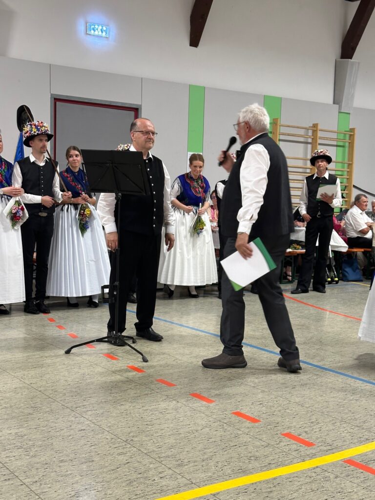 Helmut Milles, der Vorsitzende der HOG Ulmbach-Neupetsch, begrüßte alle Anwesenden und hob besonders die Ehrengäste hervor: Bürgermeisterin Claudia Dörner, Vertreter des Gemeinderats von Rechberghausen sowie den Bürgermeister der ehemaligen Heimatgemeinde Ulmbach-Neupetsch in Rumänien. Sein Dank galt auch den vielen Trachtenträgern und den zahlreichen Helferinnen und Helfern, ohne die das Fest in dieser Form nicht möglich gewesen wäre.